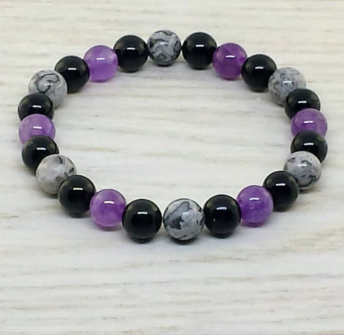 دستبند ترکیبی تراش گرد آمیتیست، جاسپر دودی و تورمالین