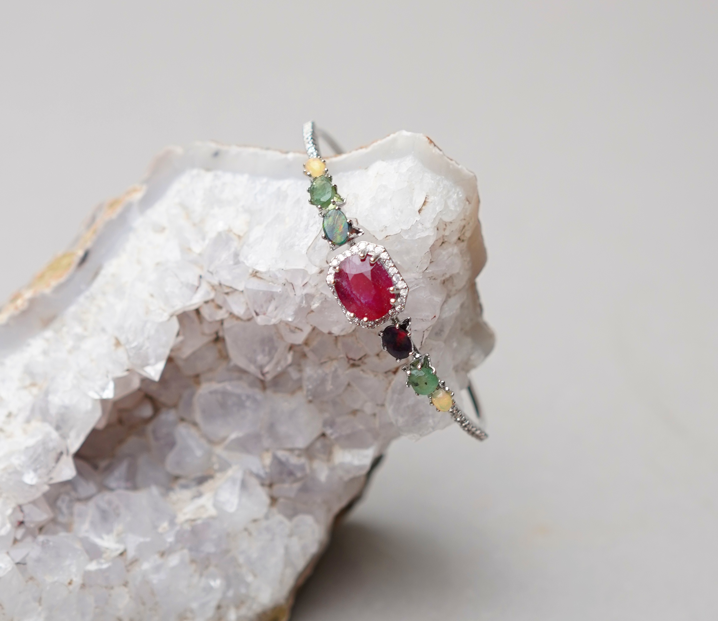 دستبند ترکیبی تراش گرد آمیتیست، جاسپر دودی و تورمالین