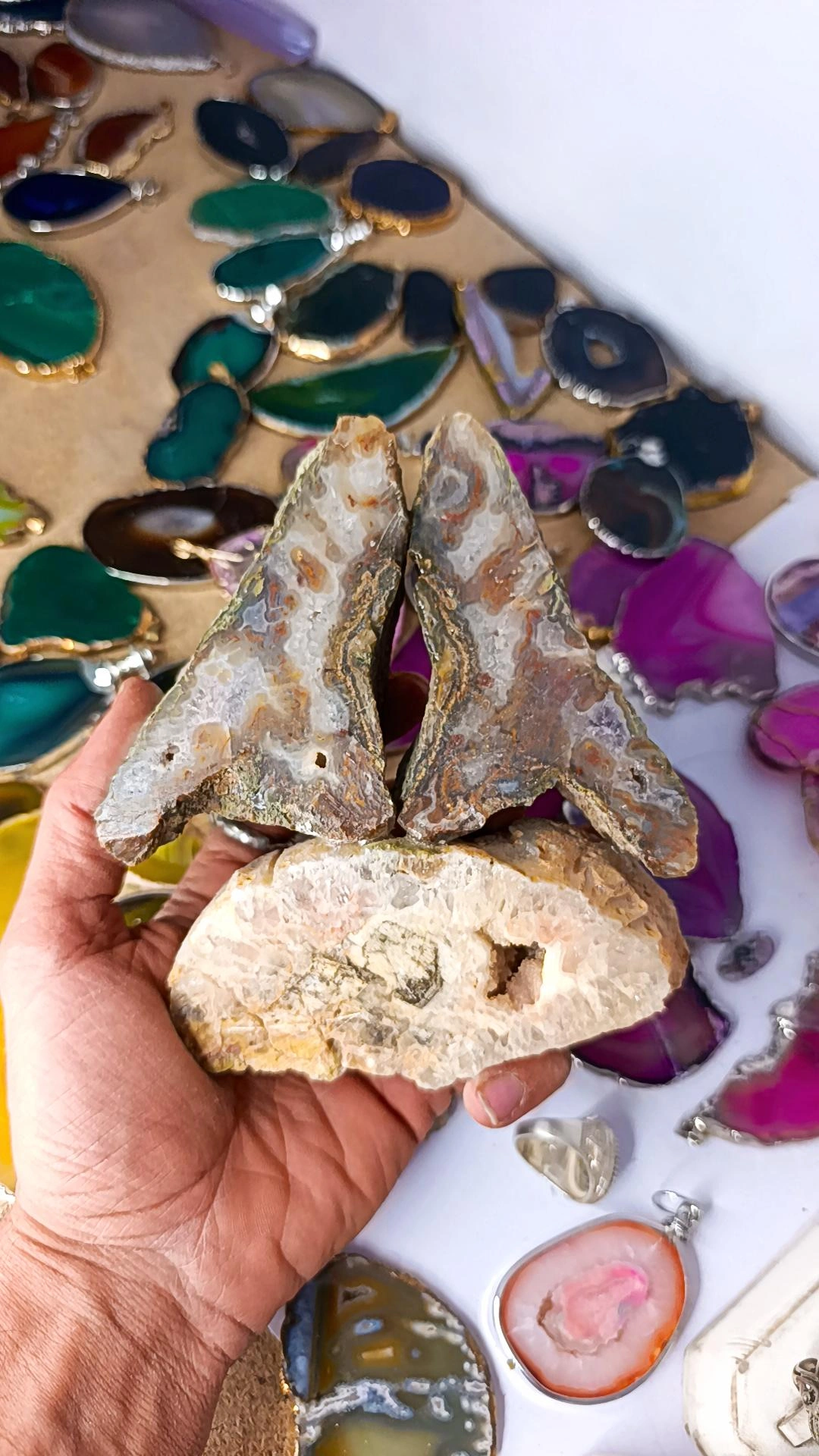 یه جفت عقیق شجر دار طبیعی روی پایه کوارتز سایز درشت حدود. ده سانتیمتر