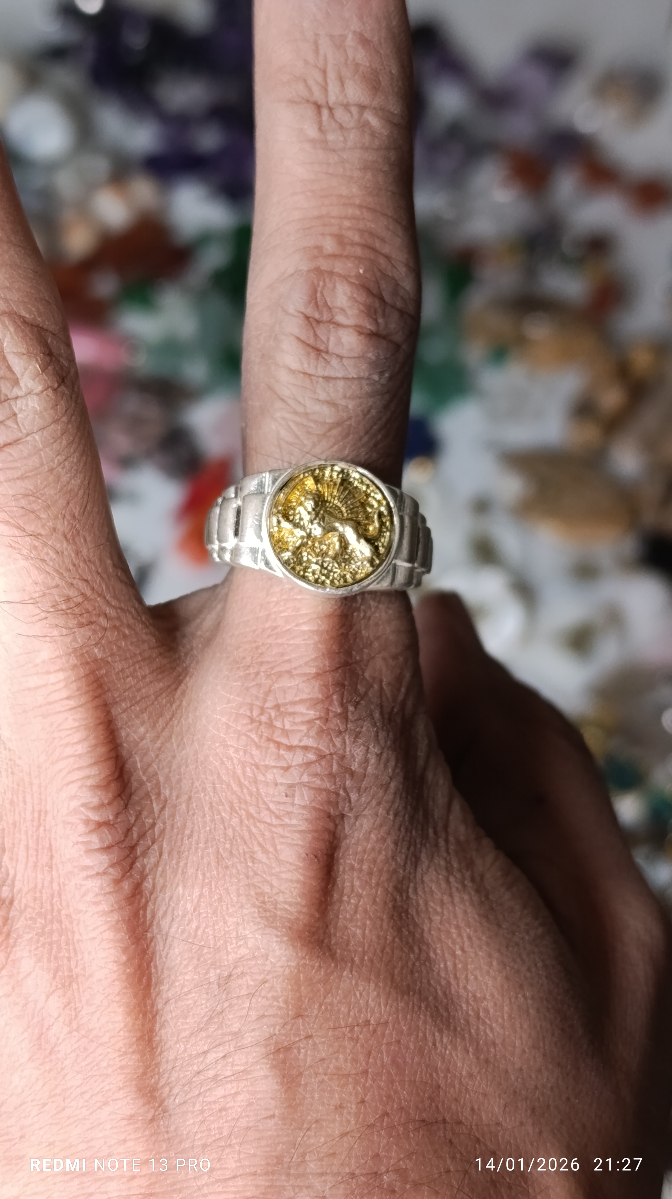 درود انگشتر شیر و خورشید رکاب نقره به ضمانت اصالت و کیفیت عالی طرح رولکس با حدود ۱۱ گرم وزن و سایز ۲۱ میلی متر قطر داخلی تقدیم میشه