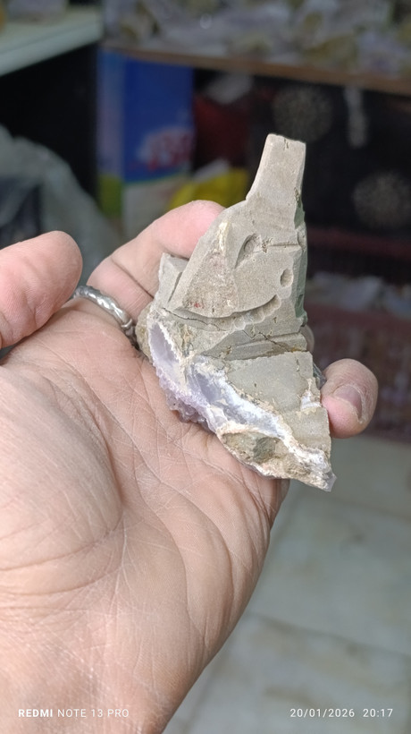 آمیتیست طبیعی با تراش کاروینگ کنار کار طرح دلفین