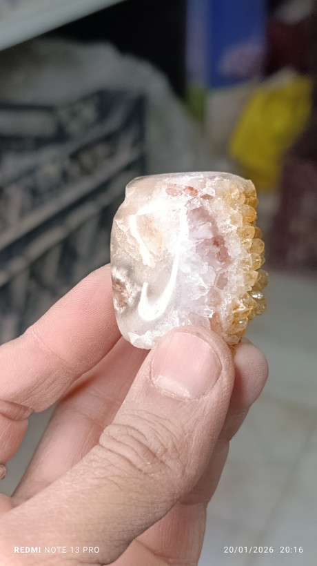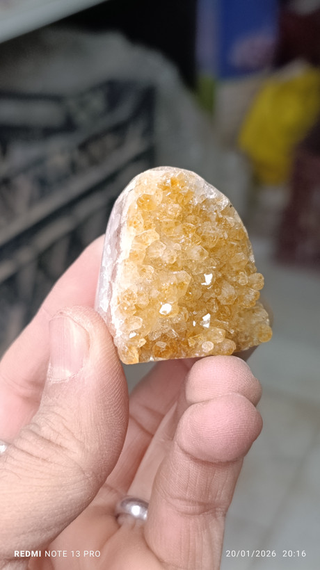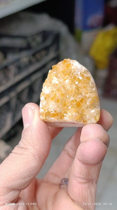 سنگ طبیعی سیترین بلور ریز کار برزیلی فوقالعاده حرفه ای و بسیار پر انرژی سنگ معروف به ثروت وزن کار ۸۴ گرم