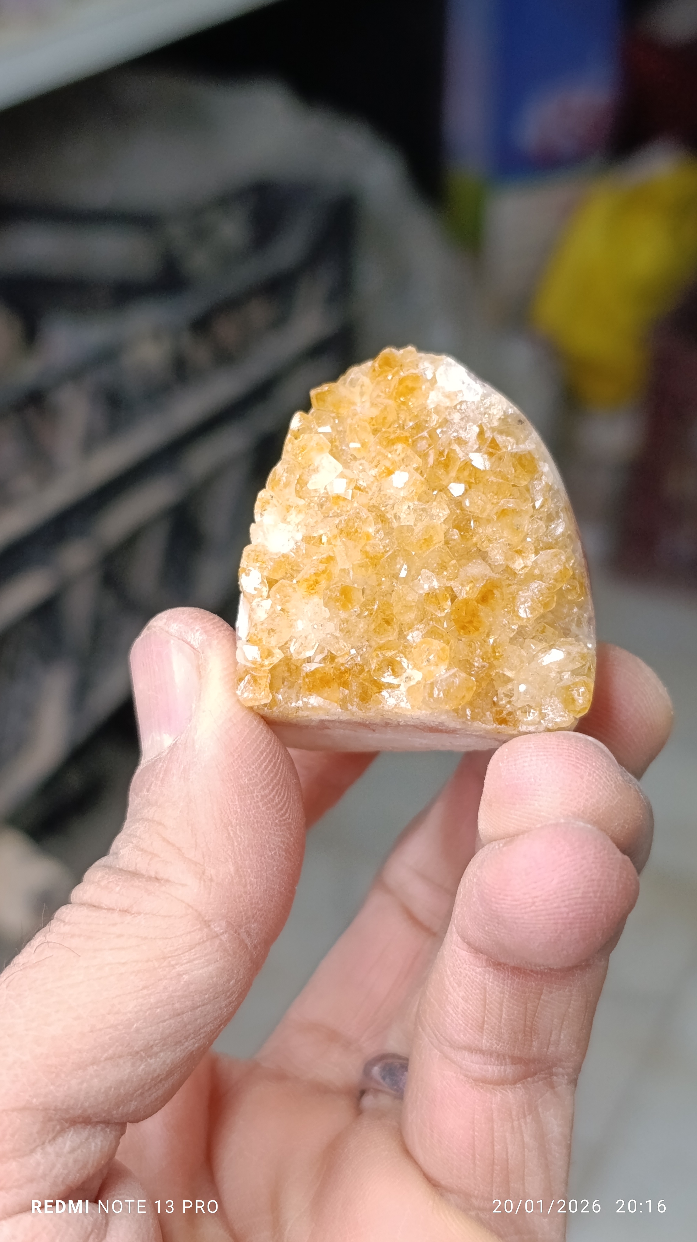 سنگ طبیعی سیترین بلور ریز کار برزیلی فوقالعاده حرفه ای و بسیار پر انرژی سنگ معروف به ثروت وزن کار ۸۴ گرم