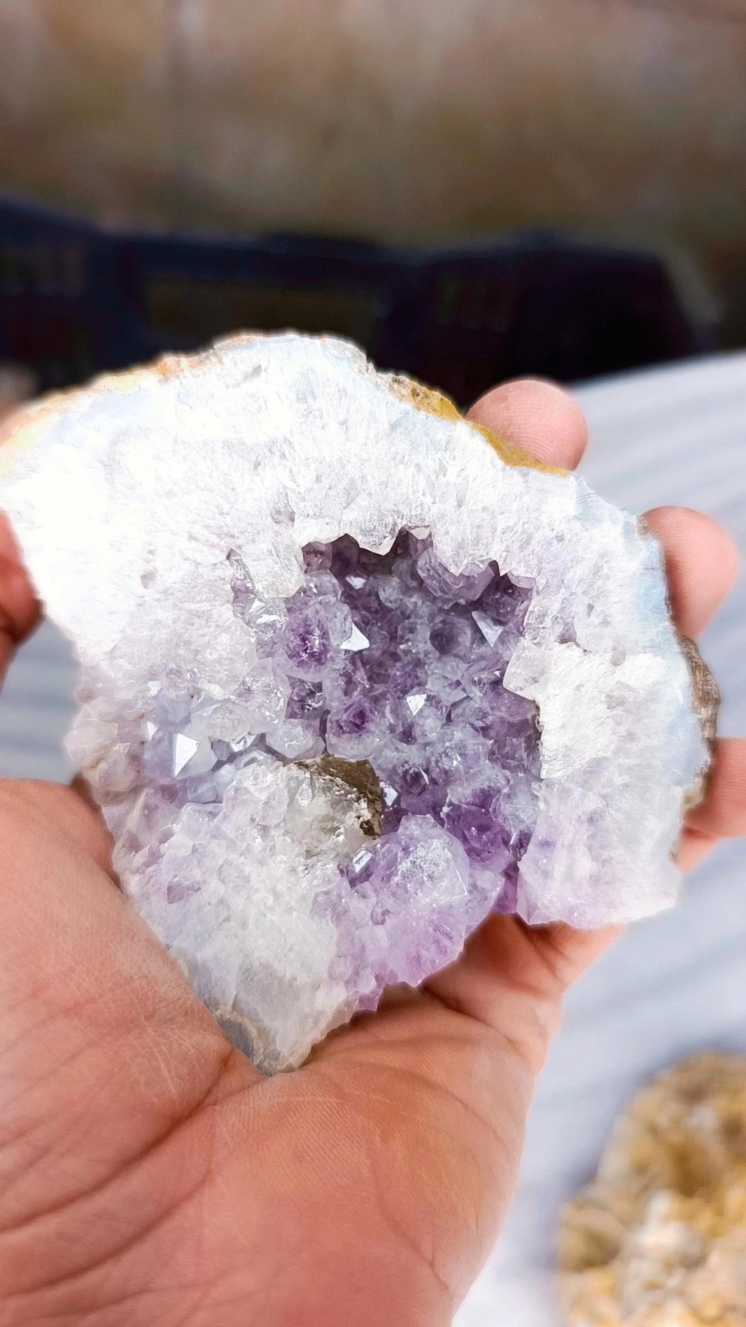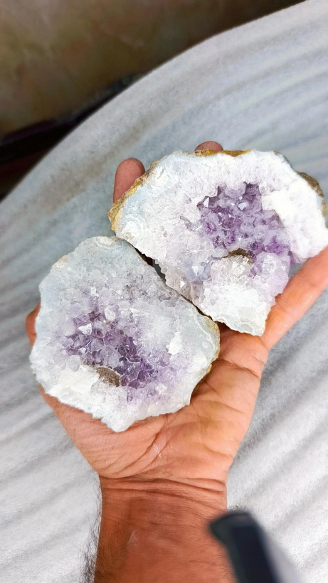 یک جفت آمیتیست کاملا طبیعی با بلور های درشت و سالم کاری با کیفیت و عالی