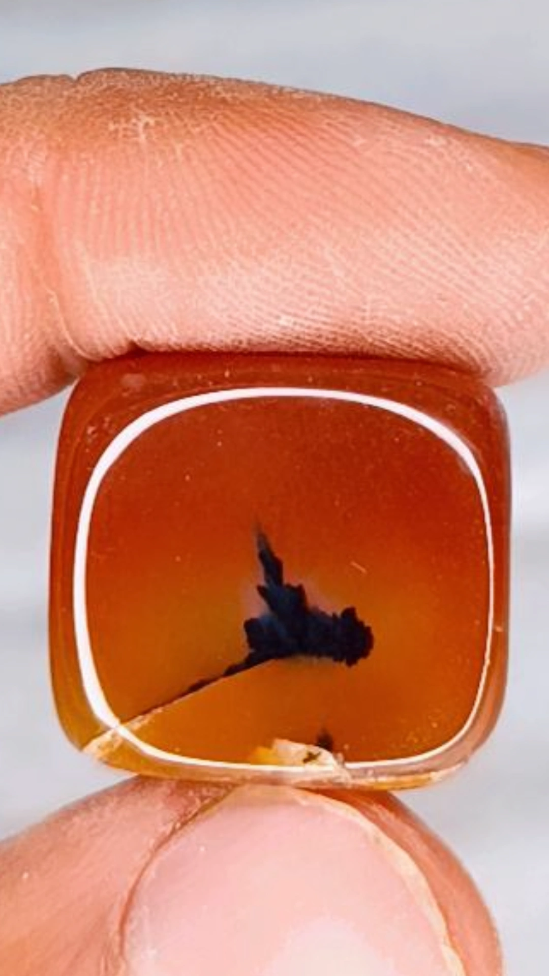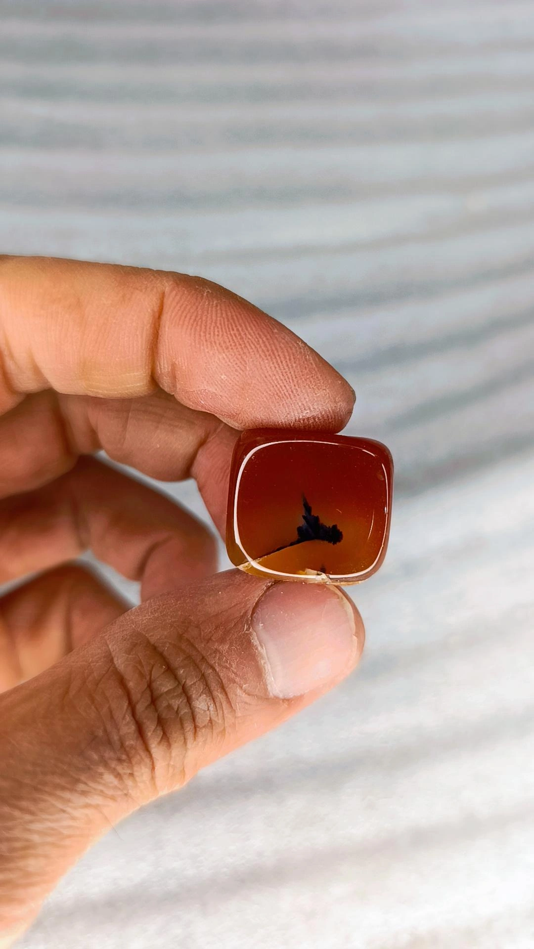یک قطعه شجر مشکی روی عقیق قرمز.