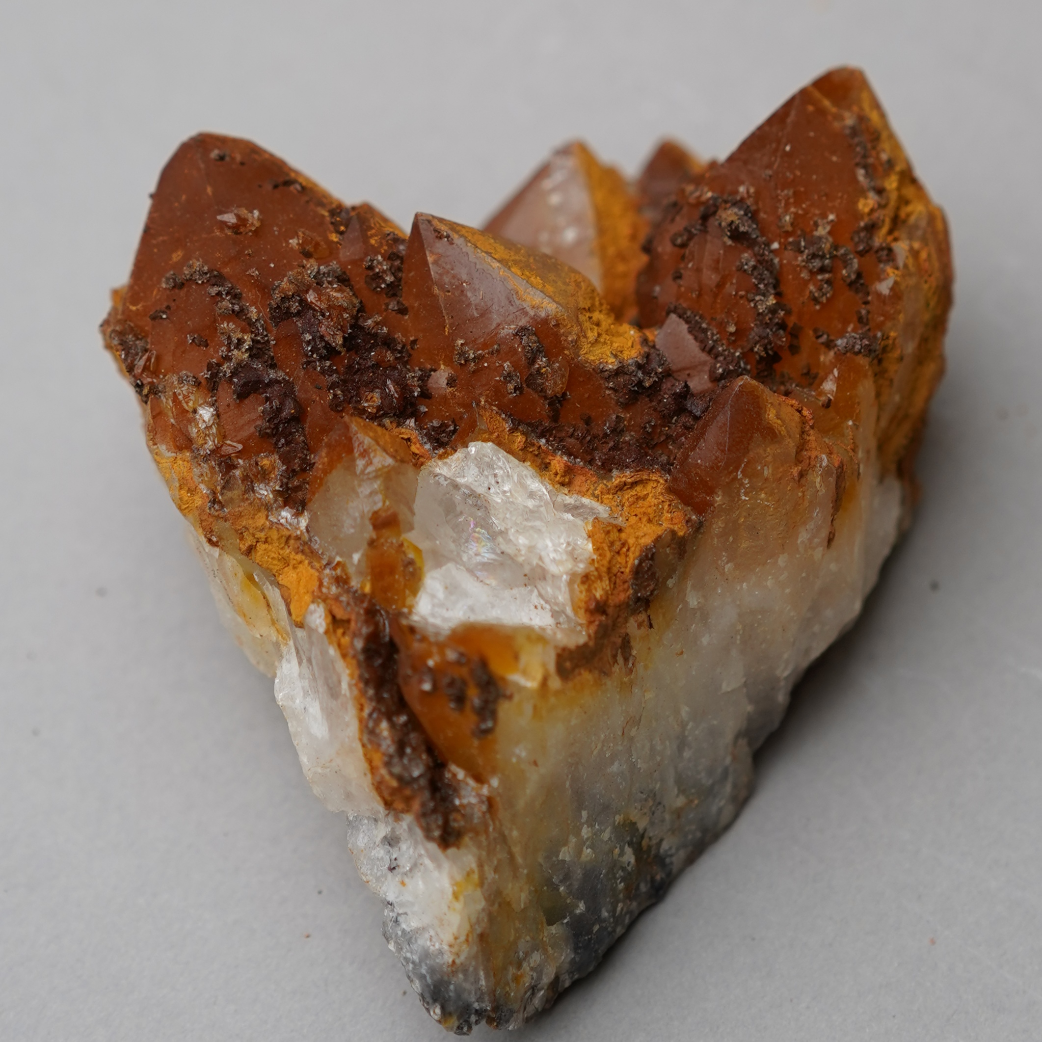 یه کار بی نظیر از کوارتز هماتپییدی چند سر کوارتز در کنار هم یه نمای جذاب و خاص برای دکور و میز کار