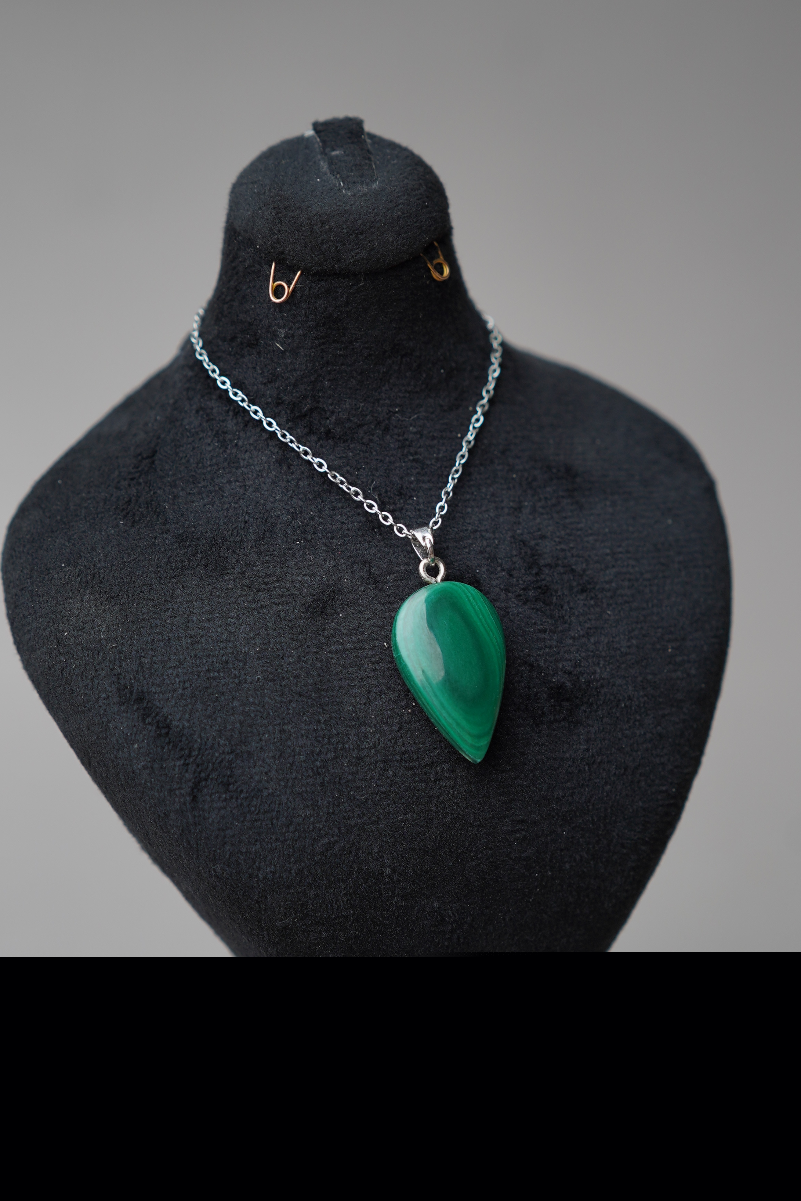 گردن آویز زیبای مالاکیت یه کار فوقالعاده لوکس و زیبا به همراه زنجیر استیل