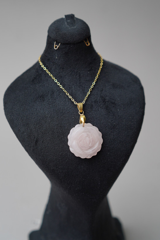 گردن آویز کاروینگ رز کوارتز اصلی